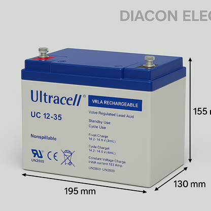 Este pack incluye 2 baterías ULTRACELL de 12V 35Ah, diseñadas para trabajar juntas en sistemas de 24V, ideal para sillas de ruedas eléctricas. Ideales para usuarios que buscan autonomía, seguridad y cero mantenimientos.
