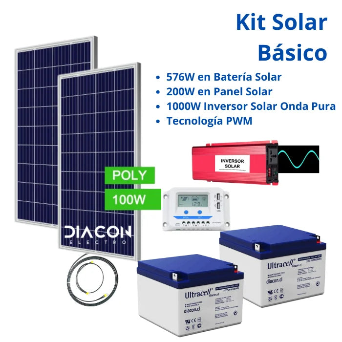 Este Kit Solar 576W Batería y 200W Panel con Inversor 1000W Onda Pura es ideal para pequeñas aplicaciones energéticas, proporcionando una solución eficiente y sostenible para alimentar tus dispositivos esenciales. Gracias a su capacidad de producción de 200W en paneles solares y un inversor de onda pura de 1000W, puedes disfrutar de energía limpia en cualquier lugar, ya sea para una casa de campo, una oficina remota o en situaciones de emergencia.