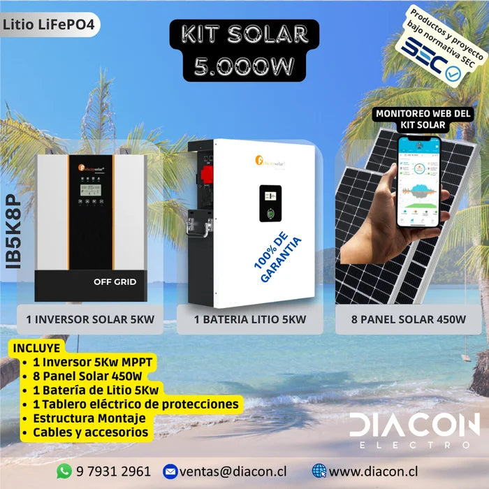 Kit solar 5Kw base con batería litio 5Kw y monitoreo por celular