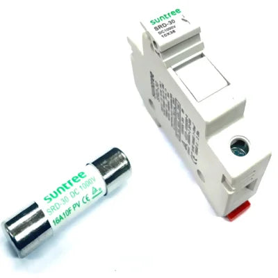 Es es una solución perfecta para proteger las conexiones de tus paneles solares. Al incorporar este fusible en tu sistema, te aseguras de que cualquier sobre corriente que pueda producirse sea controlada de manera eficiente, evitando que el equipo se vea afectado. Además, al ser de una marca confiable como Suntree, puedes estar seguro de su durabilidad y rendimiento.Características Técnicas del Porta fusible String 10A 1000V Suntree